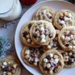 If you love cozy, chocolatey flavors, you’ll definitely want to check out my hot cocoa cookies. They’re soft, gooey, and topped with melty marshmallows, making them the perfect winter treat to enjoy alongside these festive chocolate chip cookies.